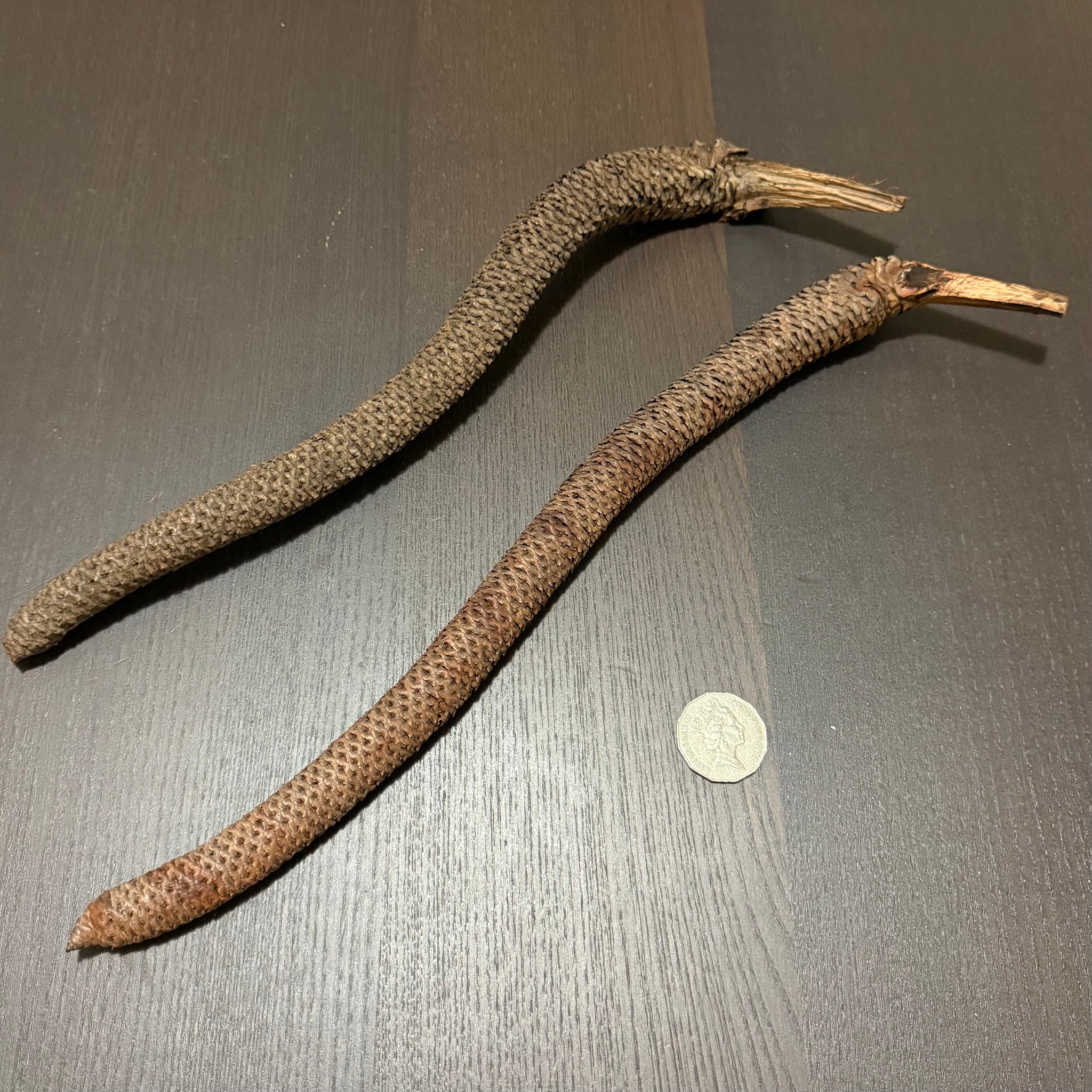 Bring the forest floor to your aquarium or terrarium with the Palmyrah Male flower stem Aquarium botanincal. Harvested from the Palmyrah Palm (Borassus flabellifer), this natural botanical is perfect for creating realistic biotope aquariums and bioactive enclosures.